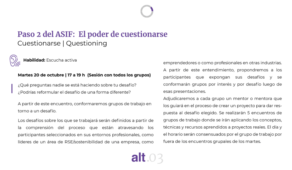 Alt es un programa de formación profesional basado en la experiencia. Durante dos meses entrenamos nuestras habilidades para responder a las necesidades del futuro.